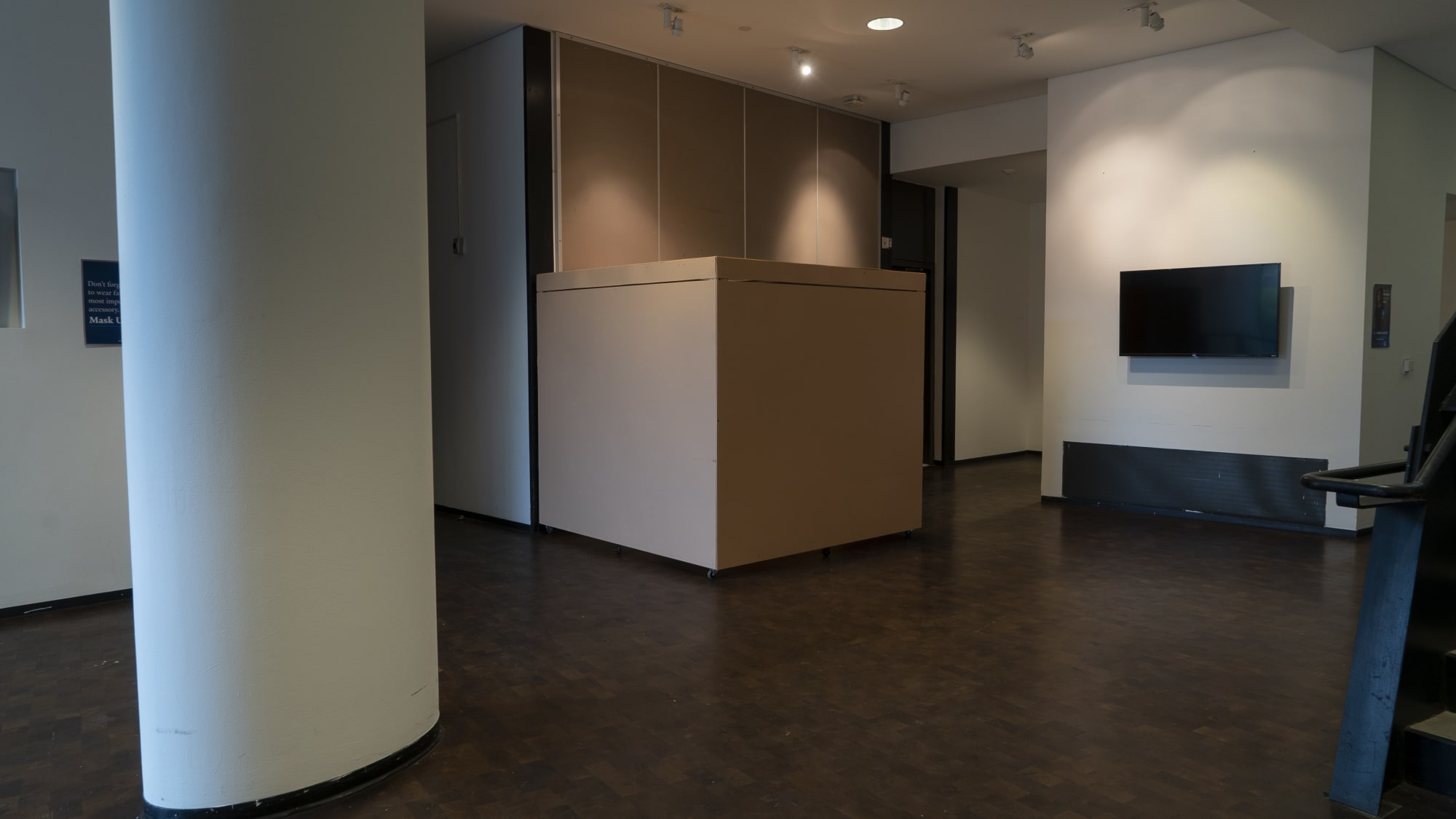 Recoding deviceTripod, gopro camera, wood, wheels, paint, water, mirror, permanent marker; 6' x 6' x 5' 10"
