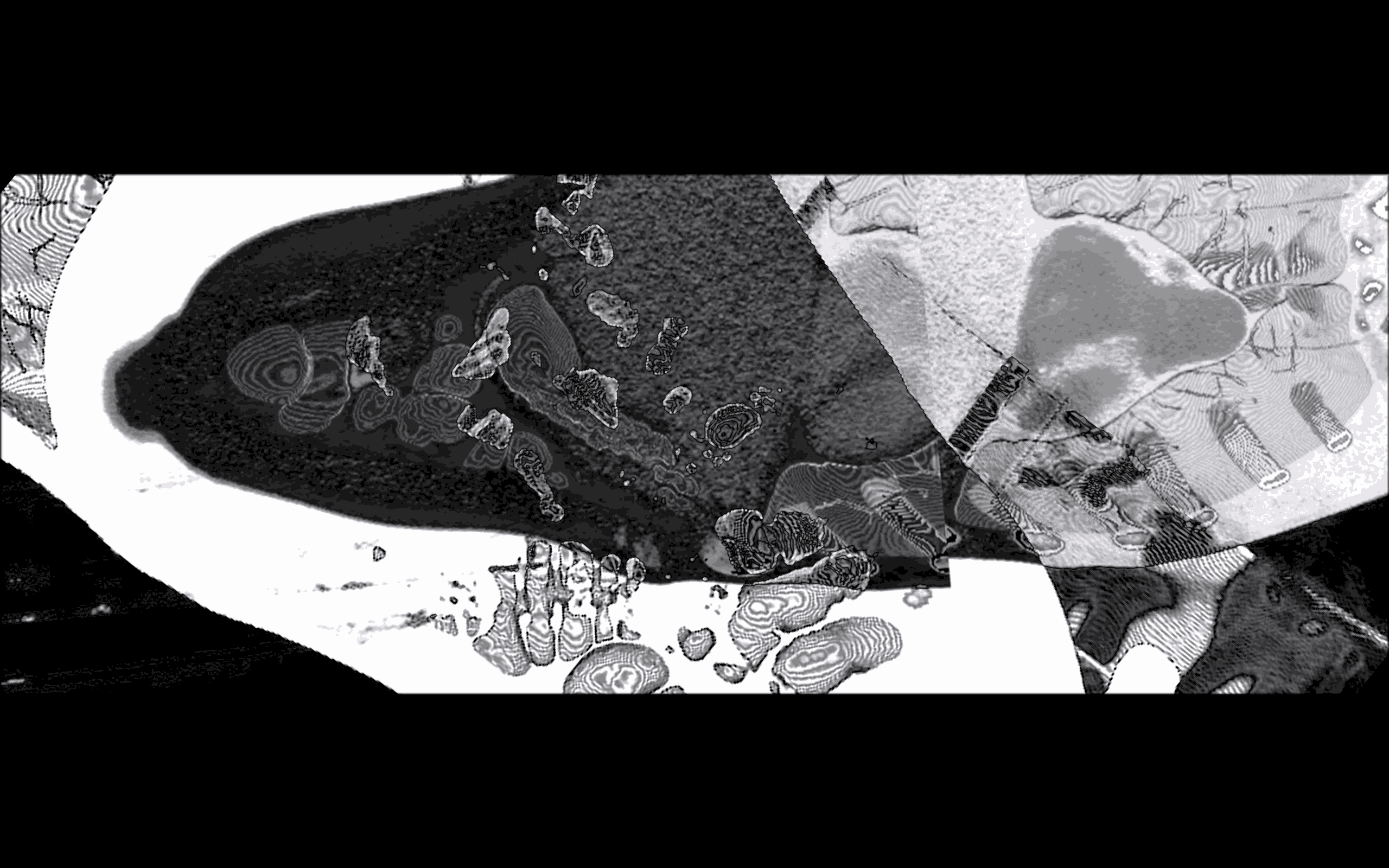 Copper, Latex, and Lead with rear projected video of layered and animated Ct scans and MRI scans, approximately 68” x 64” x 16”